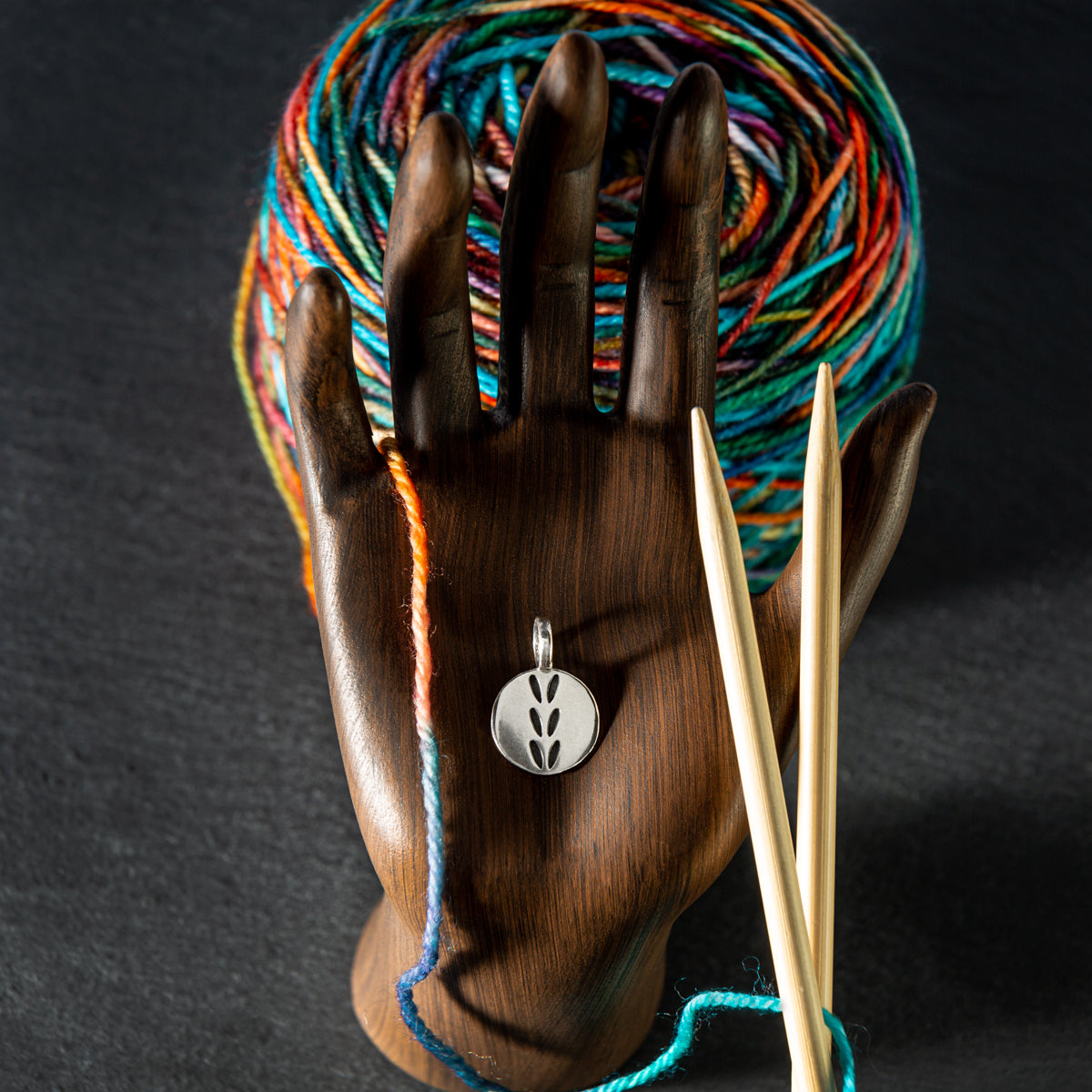 This double-sided sterling silver Porterness Demi-sec and Stockinette Stitch Motif Stitch Marker adds luxury to the knitting experience and it makes a great gift for the yarn connoisseur. This closed stitch marker will fit up to 5.5 mm/Size 9 knitting needles and add a touch of sparkle to your work in progress. Keep your project on track with this sterling silver stitch marker.