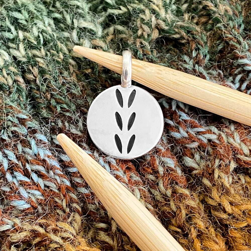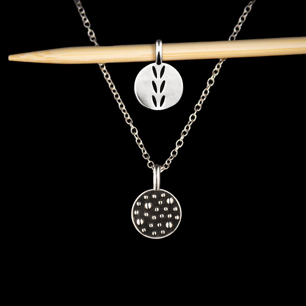 Double Sided Sterling Silver Porterness Demi-sec and Stockinette Stitch Motif Pendant/Stitch Marker