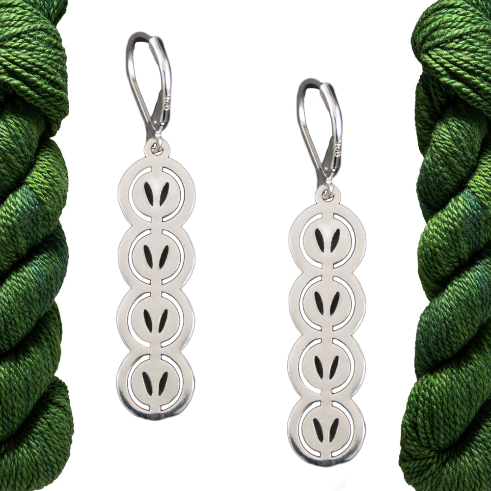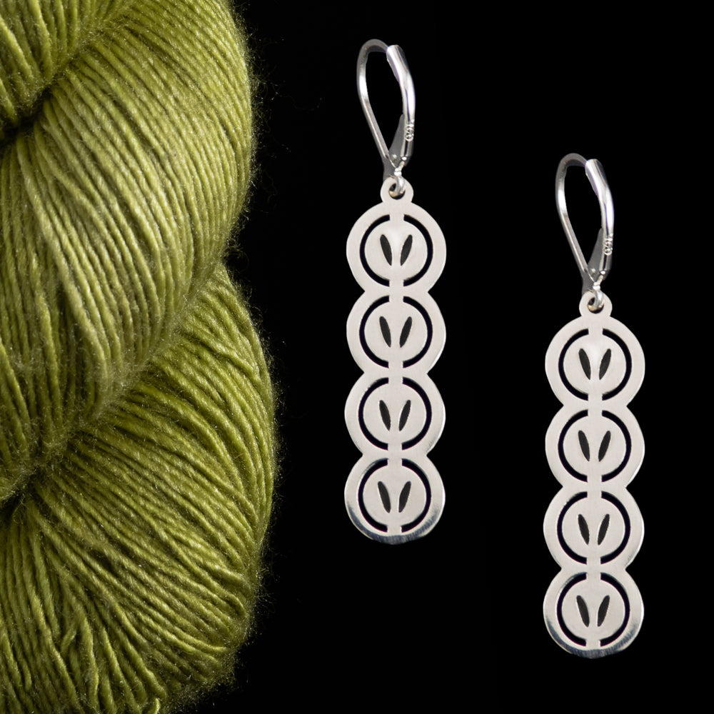 Abstracted Yarn Skein and Stockinette Stitch Motif Earrings in Sterling Silver