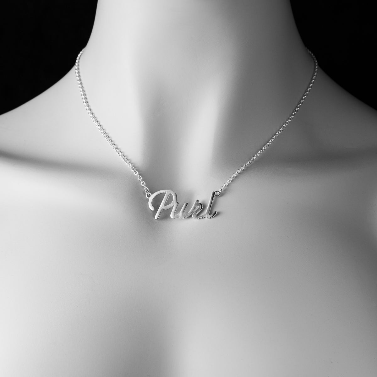 Sterling silver "Purl" necklace for the yarn-addicted soul. The artist digitally creates the pendant, 3D printed in wax, cast traditionally in Los Angeles, and finished by Porterness Studio.