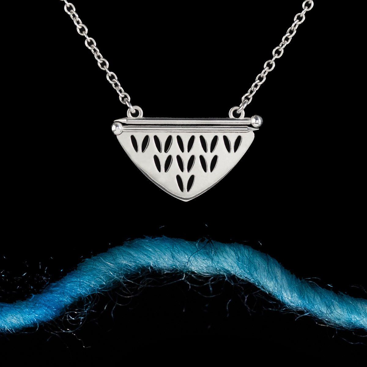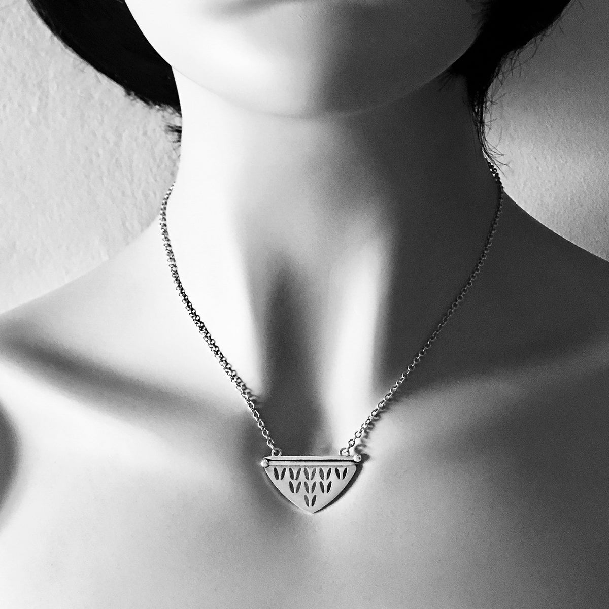 The pendant is digitally created by the artist, 3D printed in wax, cast traditionally in Los Angeles and finished by Porterness Studio.