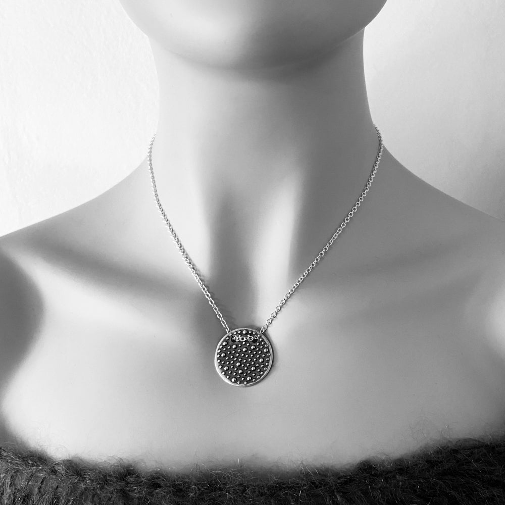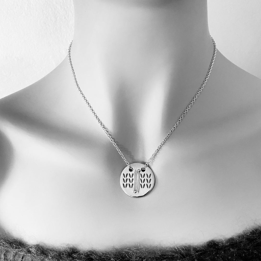 The Porterness Studio Double-Sided Knitting Needles Stockinette Stitch & Demi-Sec Necklace - Chain Through Style is the perfect complement to any handmade garment. The pendant is digitally created by the artist, 3D printed in wax, cast traditionally in Los Angeles and finished by Porterness Studio.
