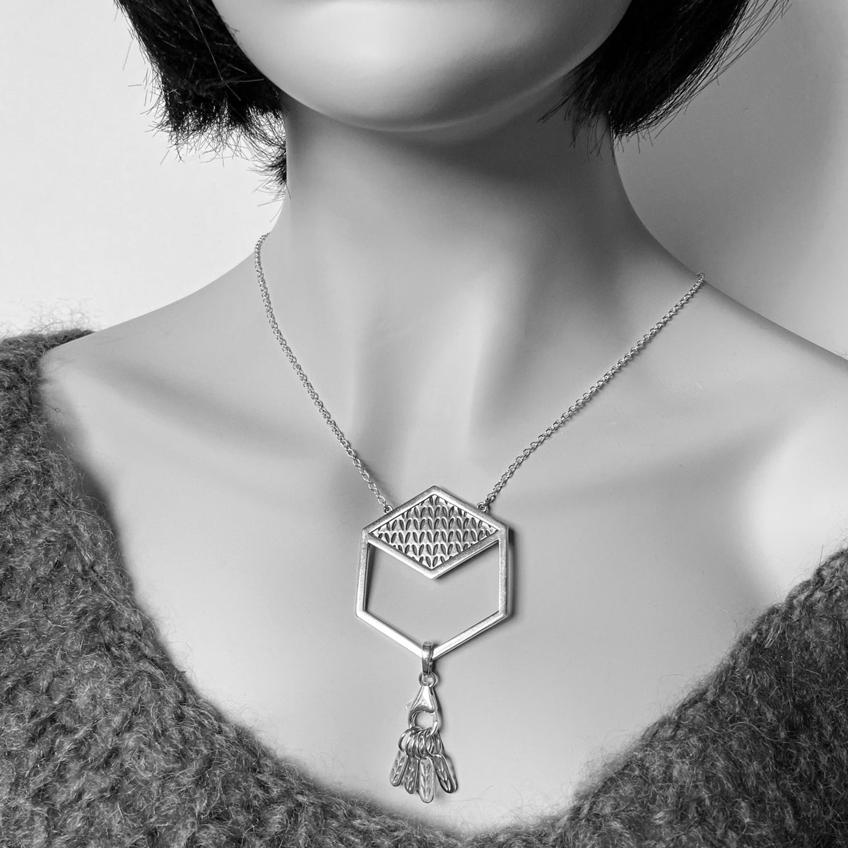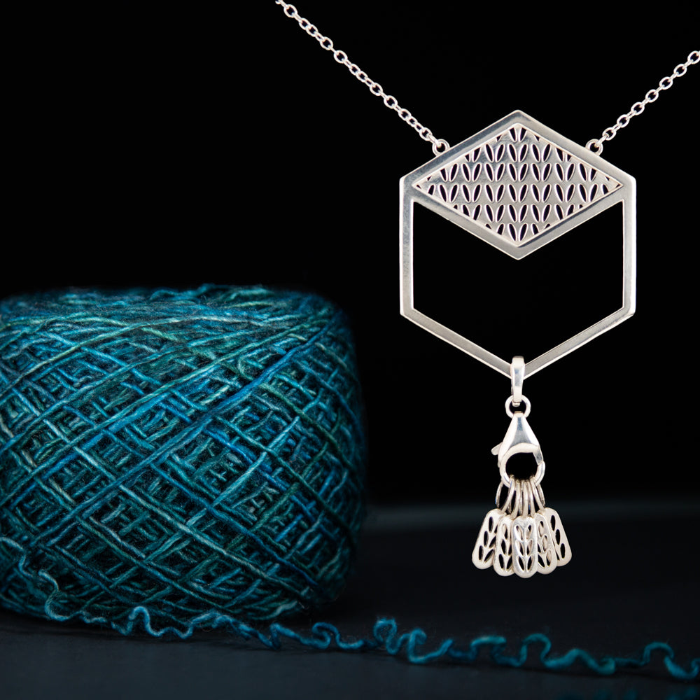 Sterling Silver Hexagon Stockinette Stitch Marker Necklace