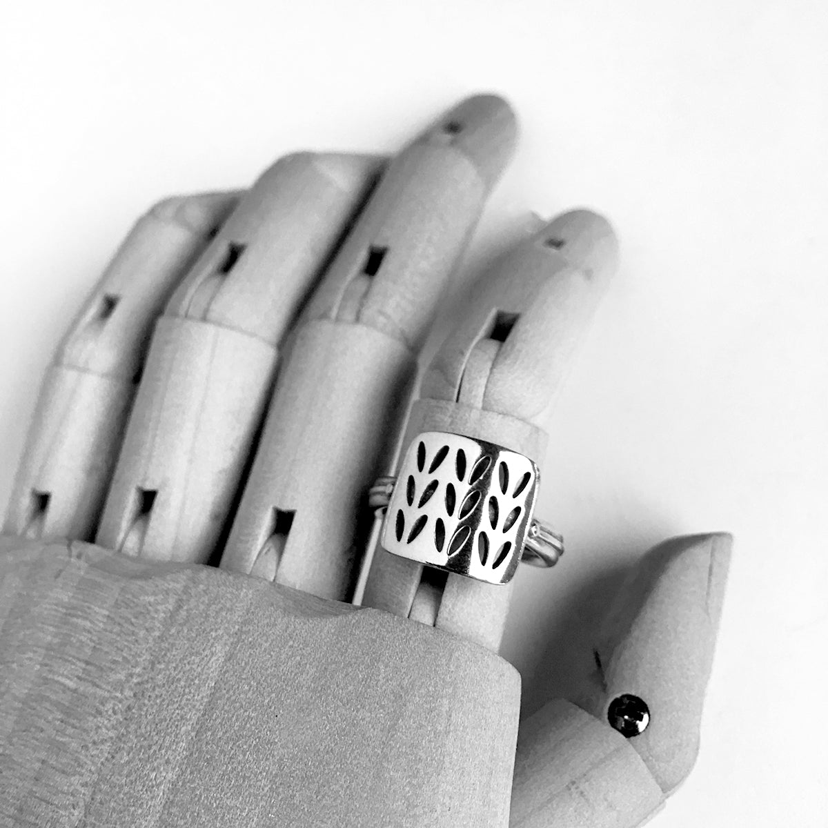 Show the world your commitment (addiction) to yarn is real! Porterness Studio Sterling Silver Baby Blanket Stockinette Stitch Ring with knitting needle side motifs is the perfect complement to any handmade garment.
