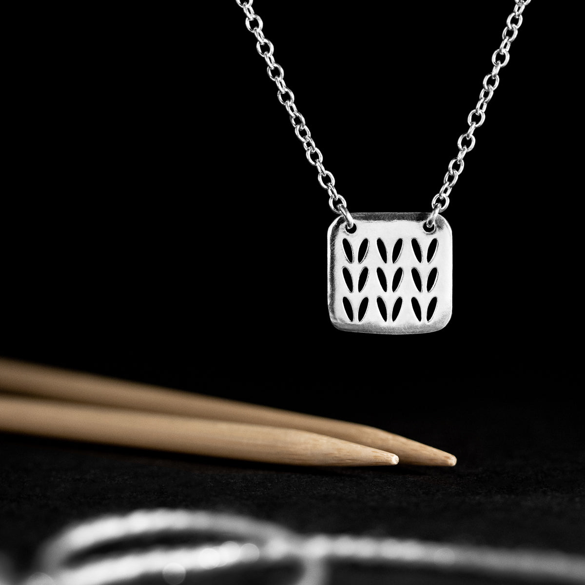 Stockinette Motif Swatch Necklace in Sterling Silver for Yarn Lovers