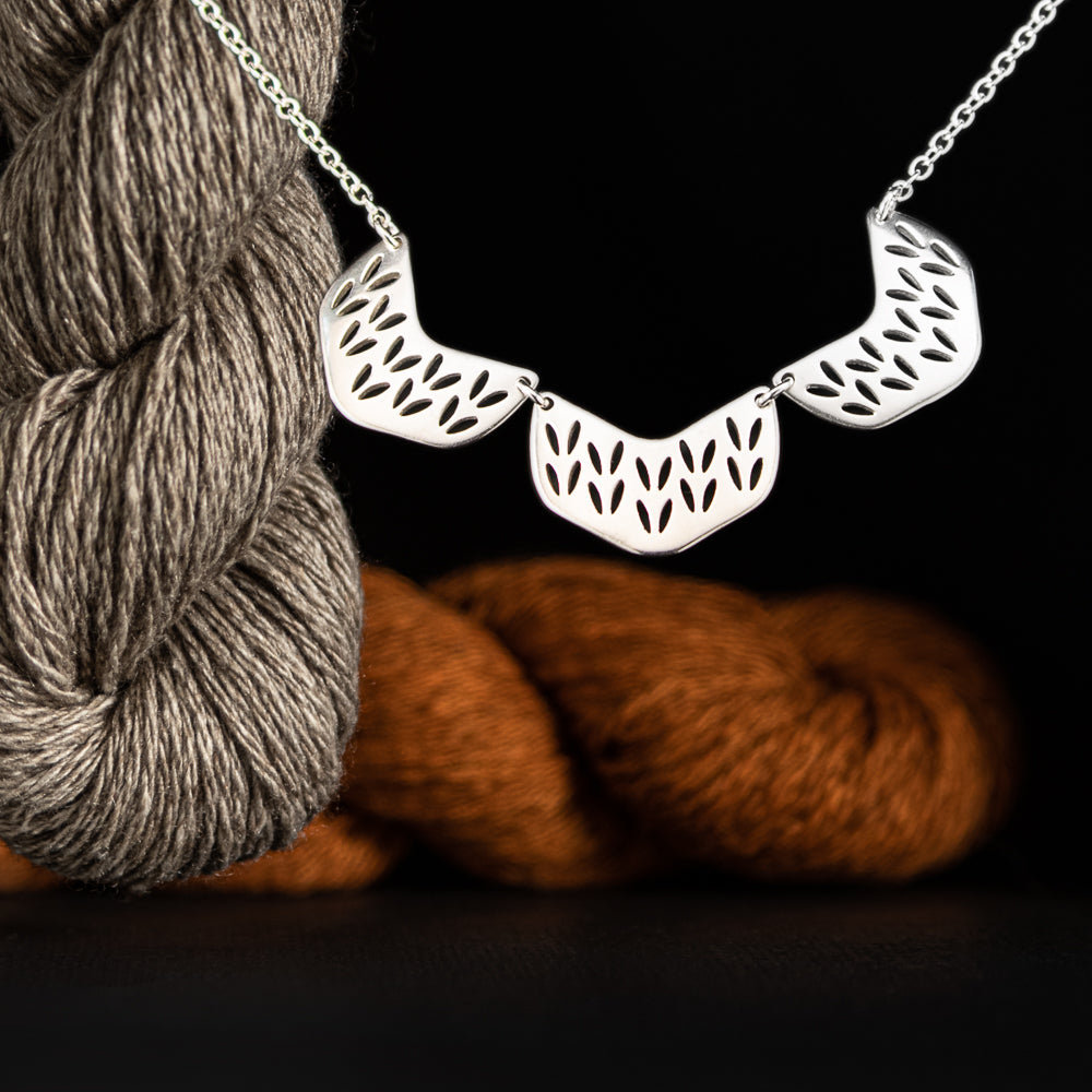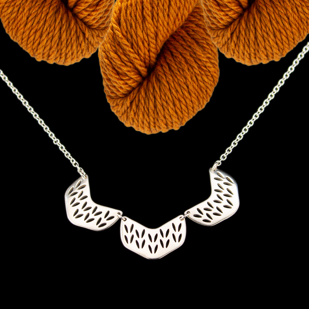 Sterling silver necklace for the yarn-addicted soul. The pendant is digitally created by the artist, 3D printed in wax, cast traditionally in Los Angeles, and finished by Porterness Studio.