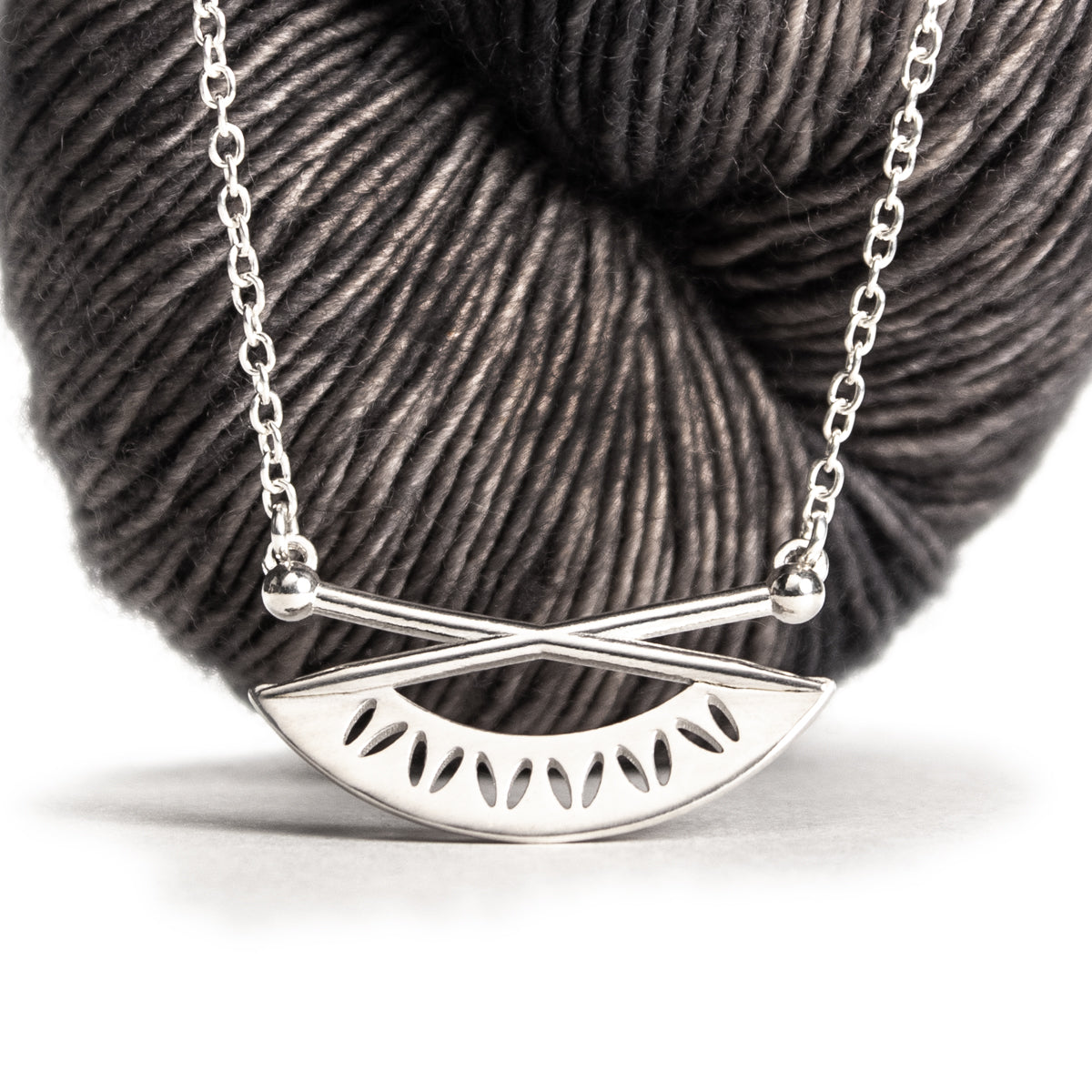 WIP It Good, Knitting Needle and Stockinette Motif Necklace in Sterling Silver